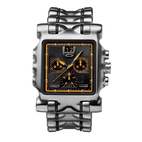 Band Color: Silver Titanium; Band Width: 27mm near case; 28mm near clasp/buckle; Bezel Color: Silver; Case: Silver + Circle-shaped; Case Finish: Satin + Titanium; Case Thickness: 15mm; Case Width: 46mm; 53mm with crown; Clasp / Buckle: Fold Over Push Button Deployment; Dial: White + analog; Hand Color: Black; Movement: Swiss + quartz; Time Zones: Single; Water Resistance: 10 atm; Other Features: longevity of a 48-month battery. Chronograph: six-hand analog display
